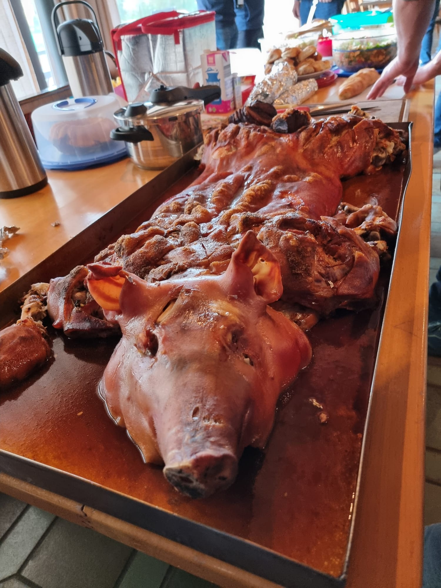 Spanferkel Essen / Corona Challenge vom 23.04.2022